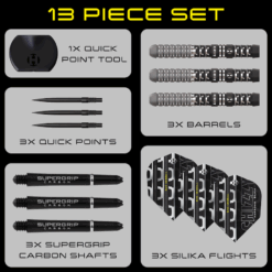 Met de geïntegreerde Harrows Quick Point Technology kunnen spelers in slechts enkele seconden de lengte en stijl van hun punten aanpassen. Zo kan elke setup optimaal worden afgestemd op de speelomstandigheden en persoonlijke voorkeuren, wat een beslissend voordeel biedt aan het bord.
