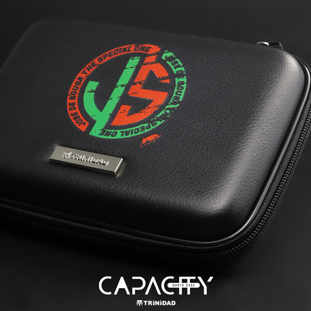 Trinidad Capacity Dart Case – geschikt voor twee sets darts en ruime opbergmogelijkheden voor flights, shafts en accessoires. Verkrijgbaar in diverse spelers-designs.