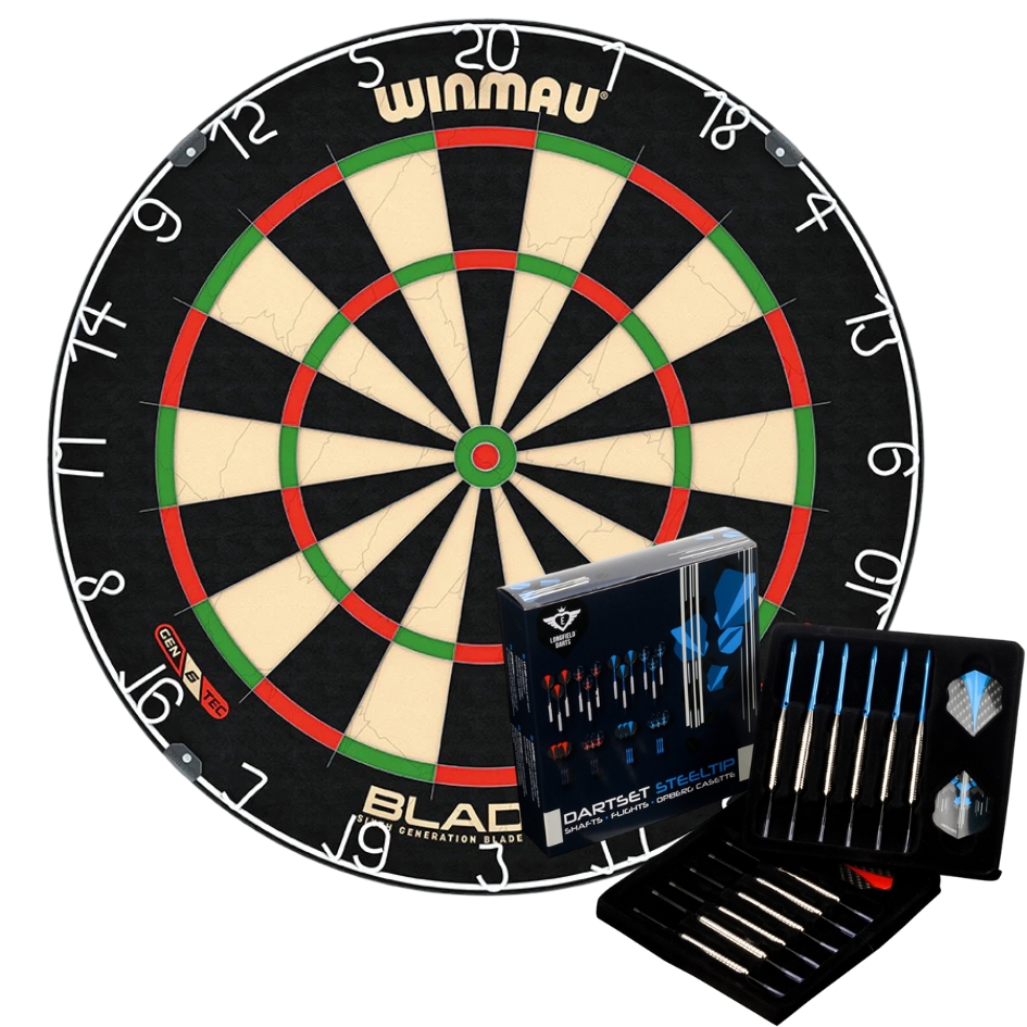 Winmau Blade 6 dartbord met Longfield complete dart set is een ideale combinatie voor zowel beginnende als recreatieve darters die direct compleet willen spelen. Het Winmau Blade 6 dartbord staat bekend om zijn duurzame sisal, strakke bedrading en betrouwbare speeleigenschappen. Dankzij het dunne wire-systeem worden bouncers geminimaliseerd en blijft het speeloppervlak langer in topconditie.